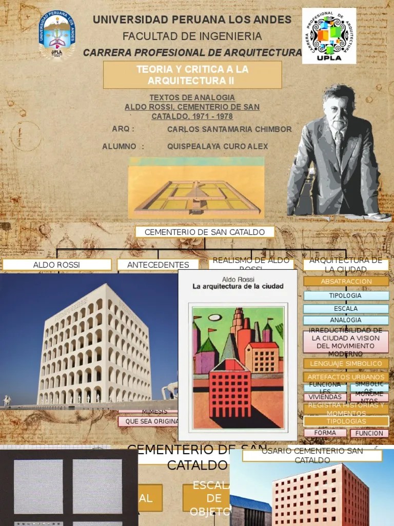En su revista casabella y su obra arquitectónica, rossi critica el funcionalismo y el progresismo. Uno de los máximos exponente europeos de la arquitectura es sin duda, aldo rossi... La estructura de los hechos urbanos, los elementos primarios y el área, la individualidad de los hechos urbanos y la evolución…
